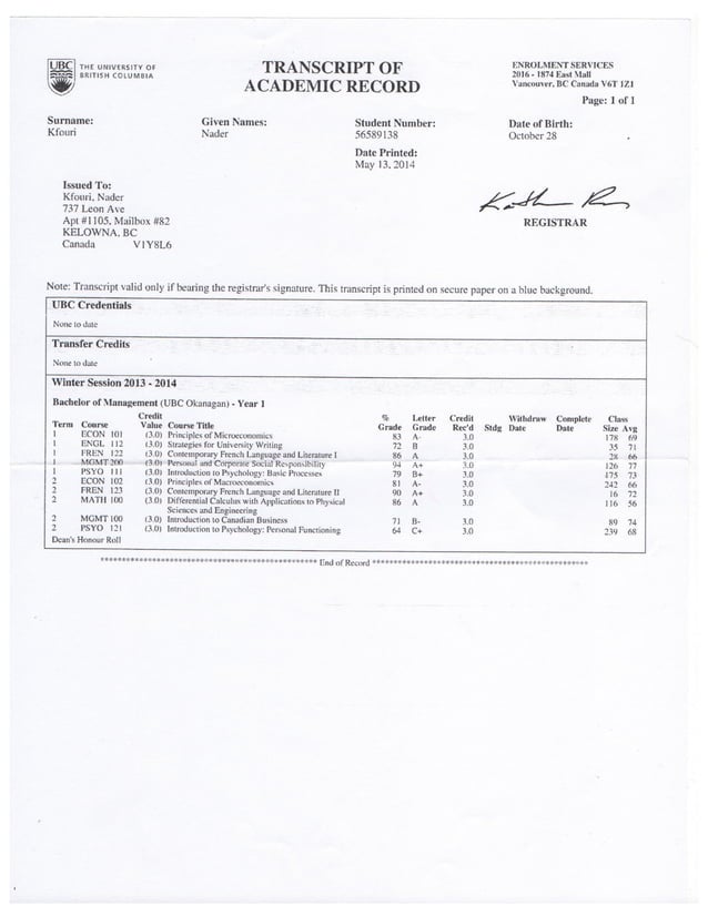 University of Alberta Unofficial Transcript | PDF | Change ...