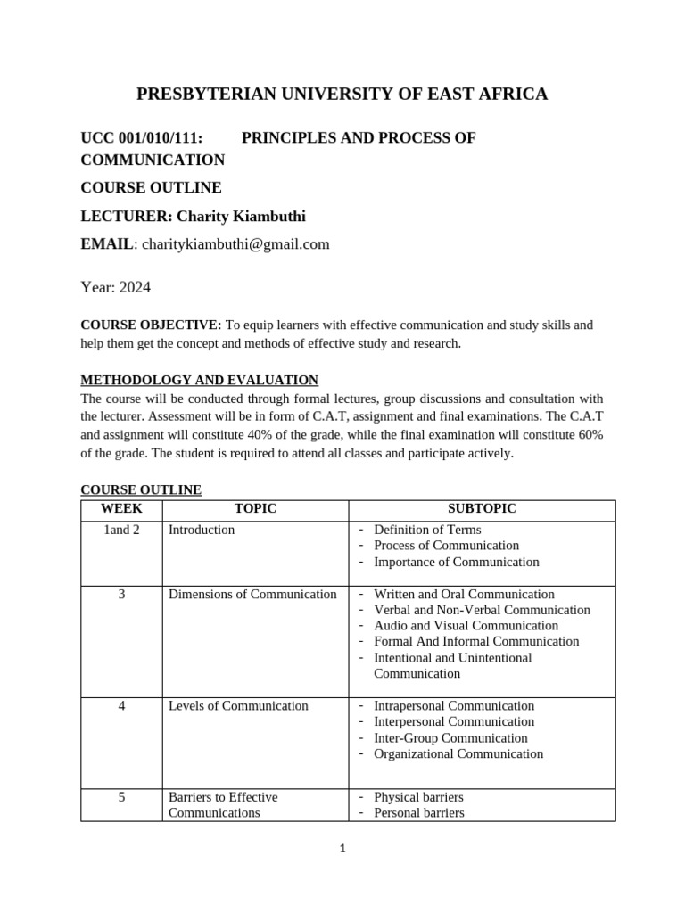 UCC 111 Course Outline and Notes 2024 | PDF | Communication | Nonverbal ...