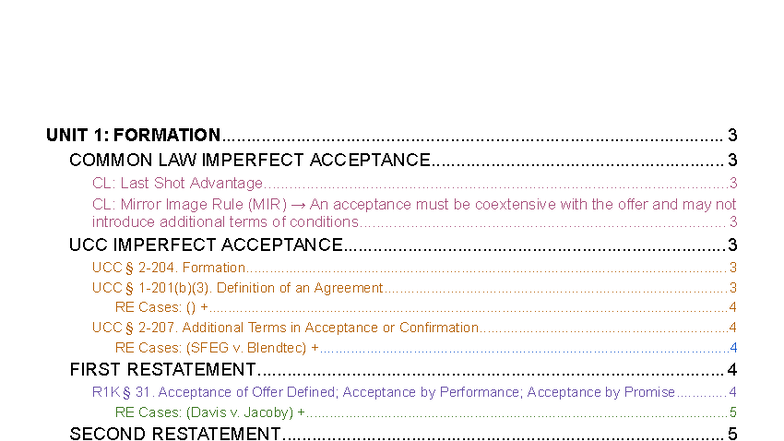 UCC outline - U.C. Contracts Outline Part I – Formation B. The Process ...