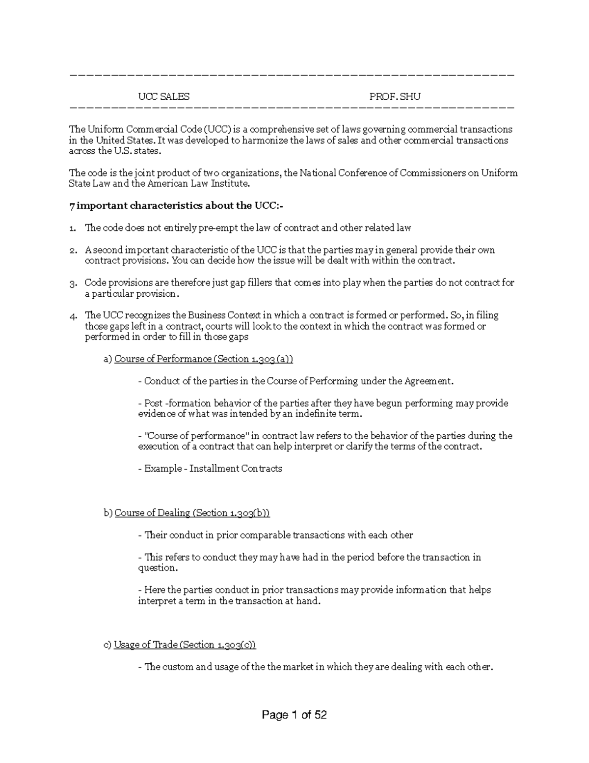 Class Notes - Introduction to the UCC and Article 2 Notes 1 .pdf ...