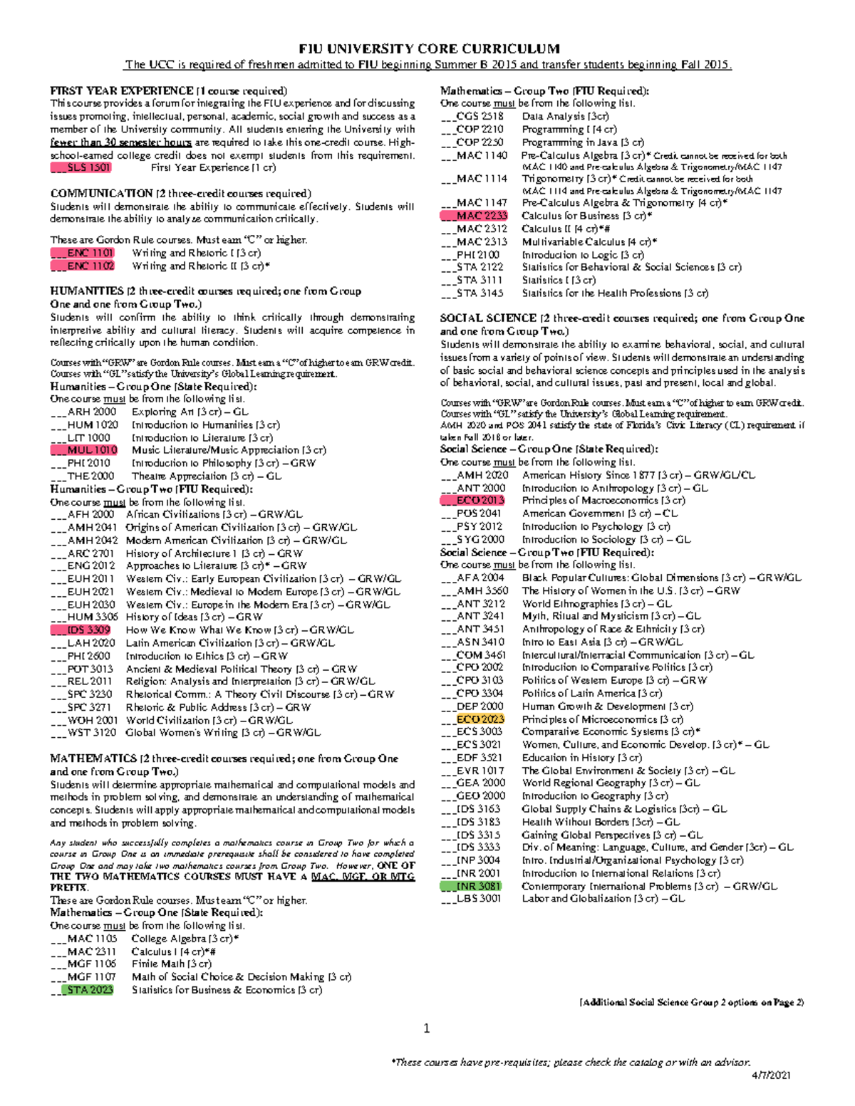 CHECKLIST for University Core Curriculum (UCC ... | Lecture notes ...