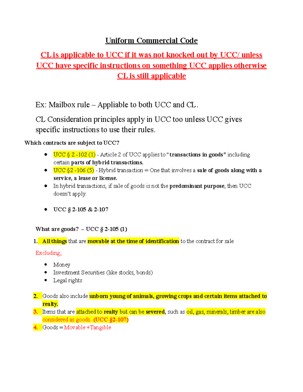 UCC Rules TO KNOW ON Goods - Contracts II Rules of Law Lecture Notes ...