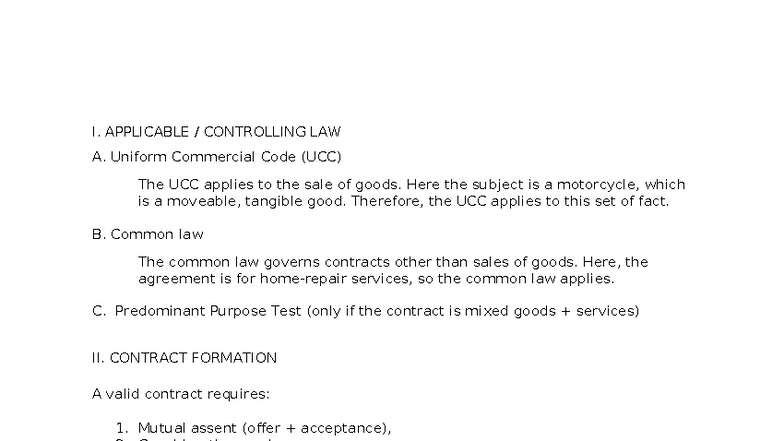 Contract Law Exam Notes (LAW 101) - UCC, Formation, Defenses - Studocu