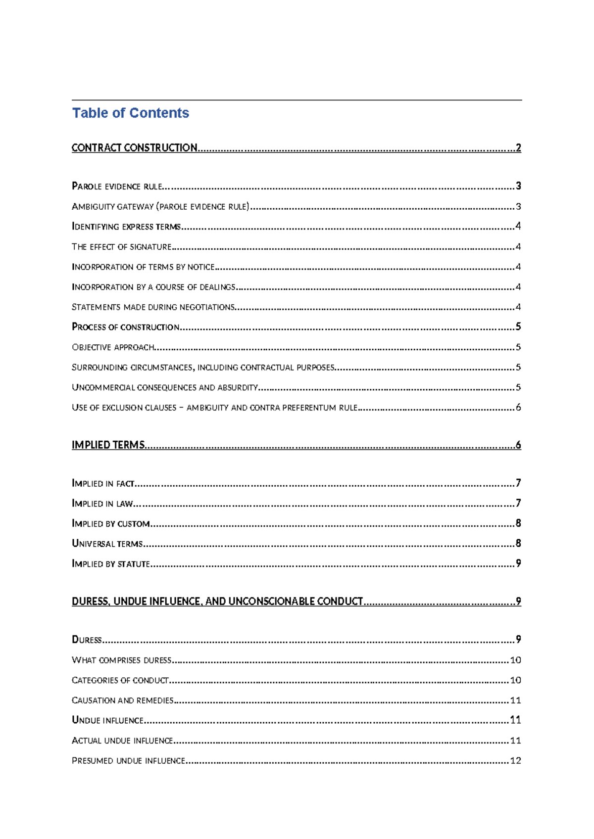 Contracts 2 - Table of Contents Contracts - Studocu