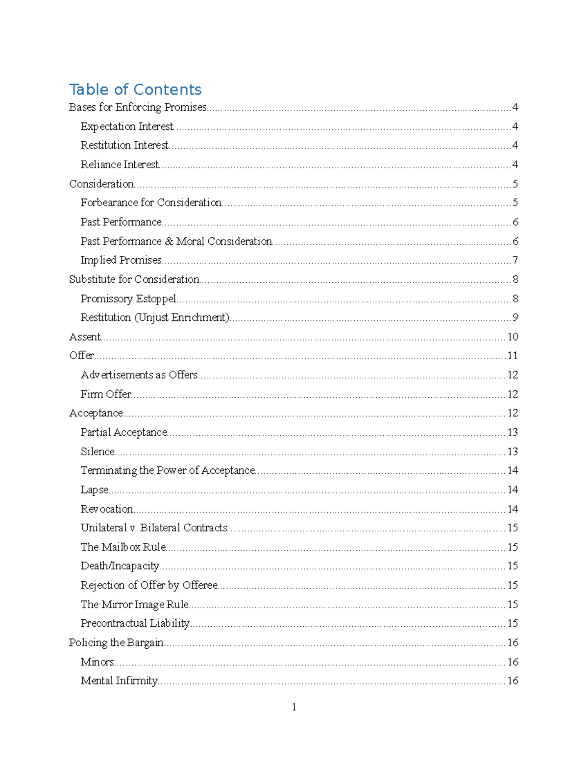 Contracts Outline.docx - Contracts Outline Table of Contents Governing ...