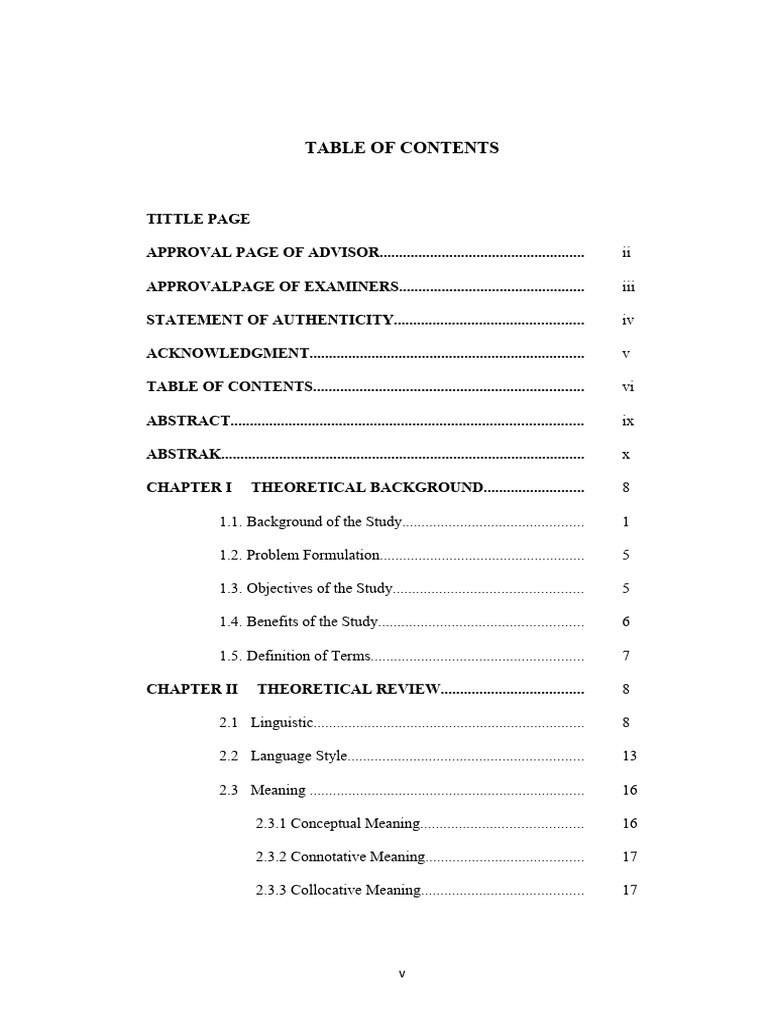 Table+of+Content Thesis Sample+A | PDF