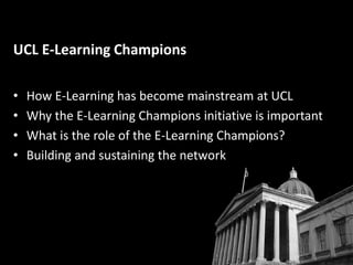 Presentation to UCL E-Learning Champions | PPTX