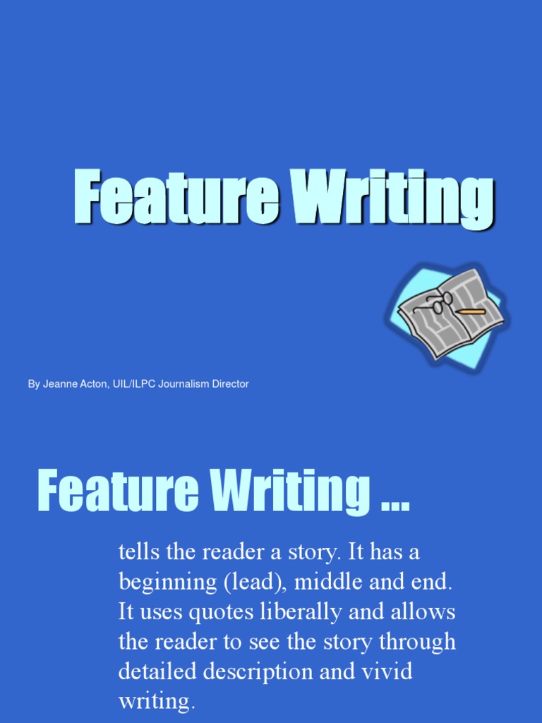 Feature Writing By Jeanne Acton, UIL/ILPC Journalism Director. - ppt ...