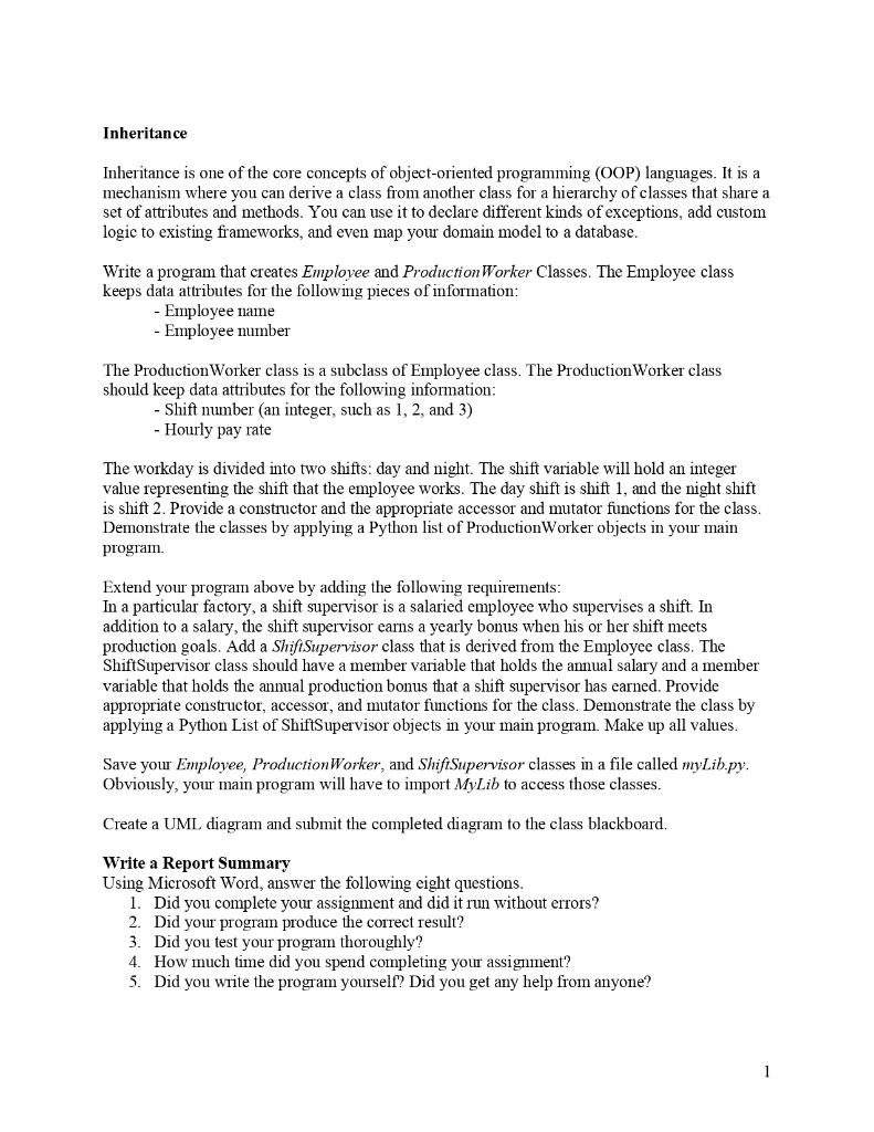 Solved 1. Write this code using Python and create a UML | Chegg.com