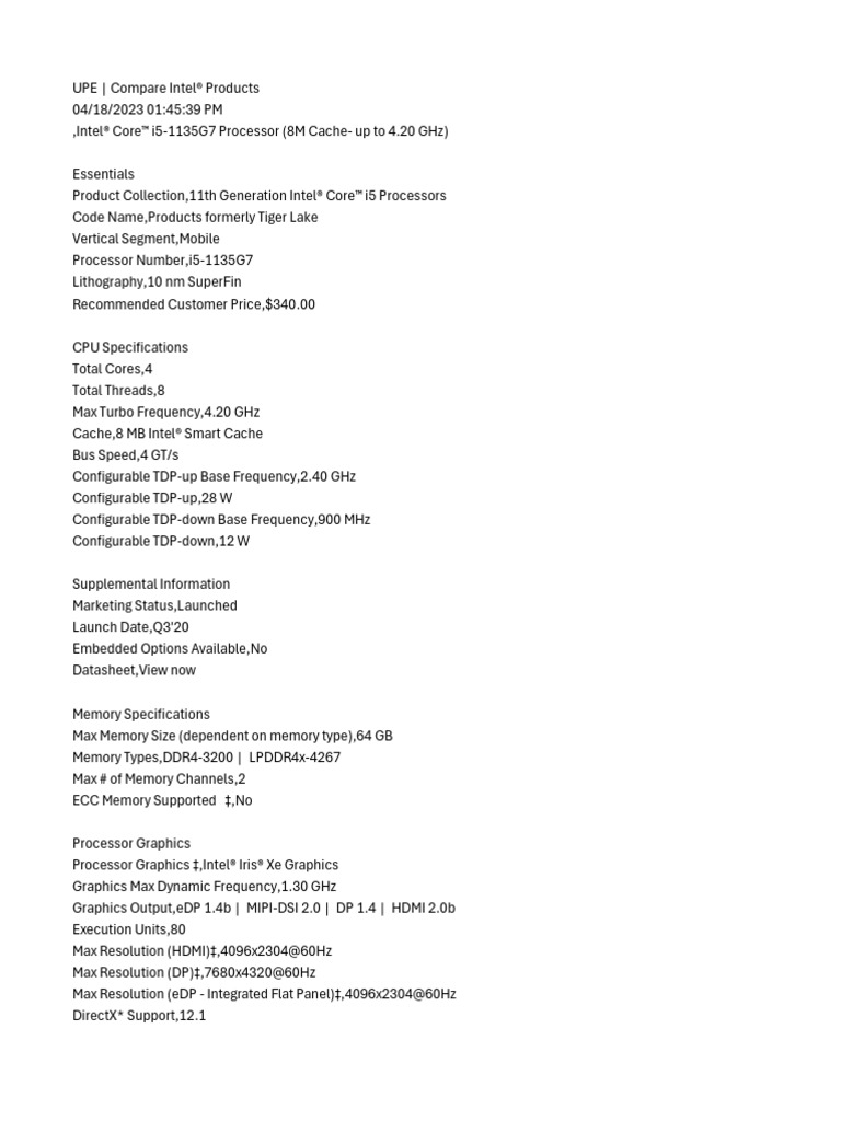 Intel UPE SpecificationsChart 2023 04 18 | PDF | Computer Science ...