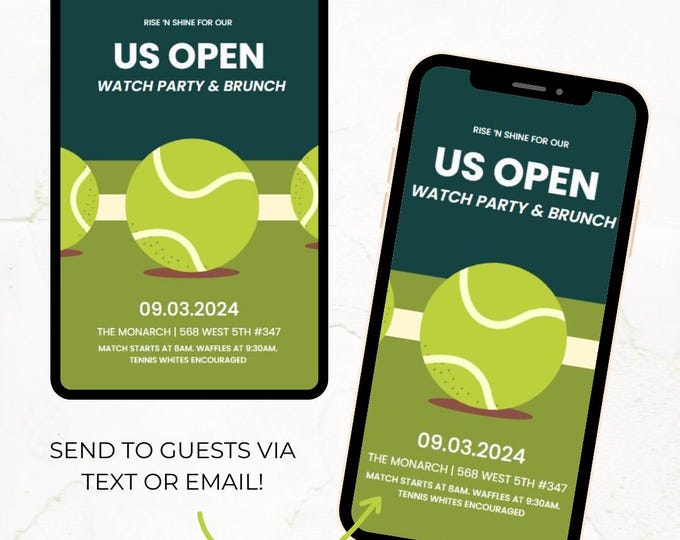 US OPEN Tennis Party Invitation Template - Etsy
