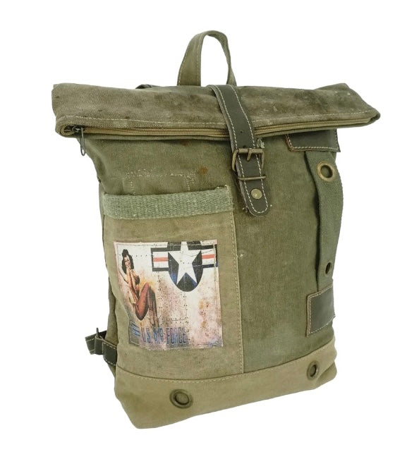 US Air Force Vintage Canvas Rucksack Backpack with Leather Straps ...