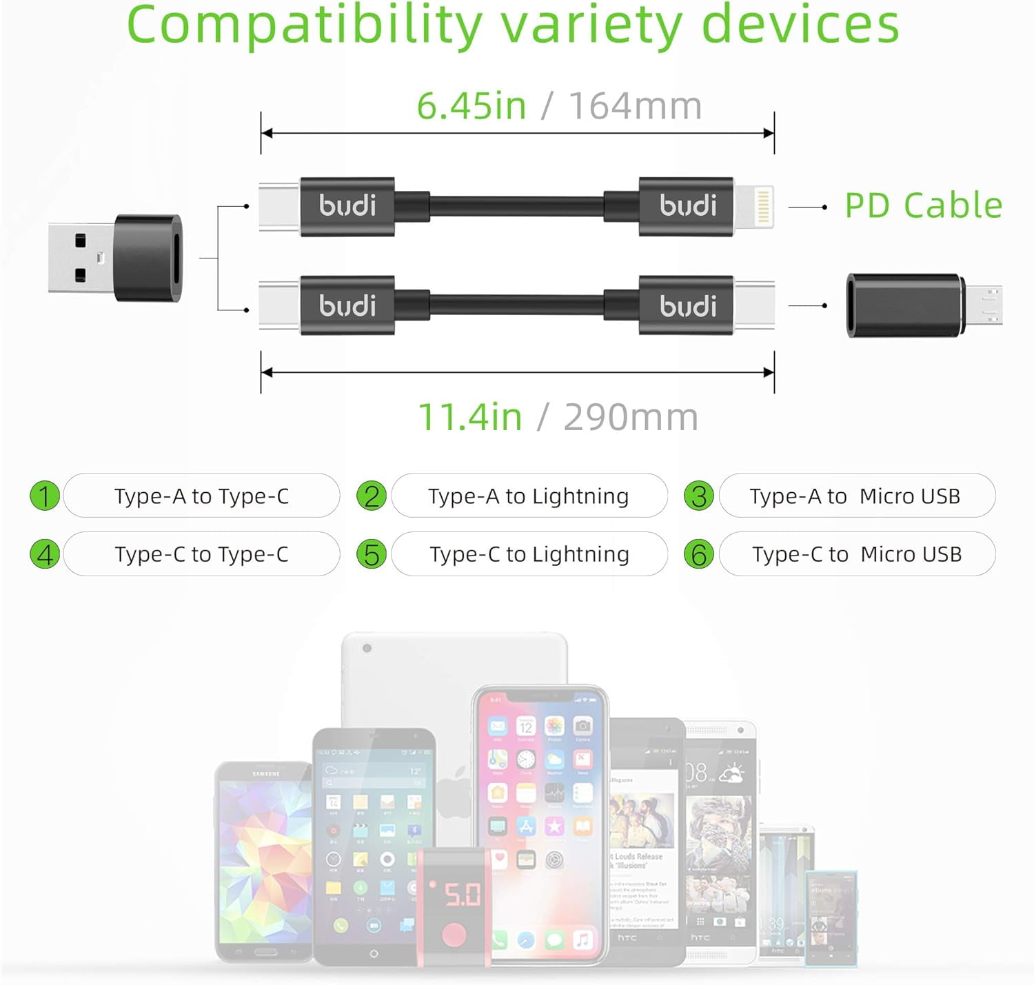 Amazon.com: BUDI MFi Certified USB Type C Cable and 3 Types USB Adapter ...