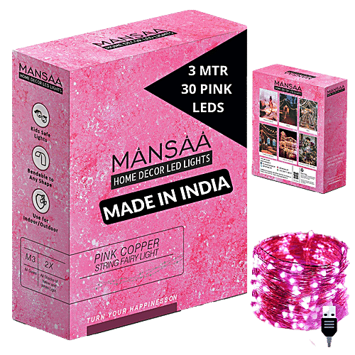Buy MANSAA USB Copper String Lights - 3 M, 30 LEDs, Pink, For Home ...