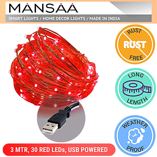 Buy Mansaa USB Copper String Lights - 3 M, 30 LEDs, Red, For Home Decor ...