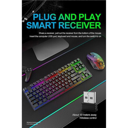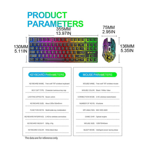 (Blue) Colorful Luminous Gaming Keyboard Mechanical Keyboard and Mouse ...
