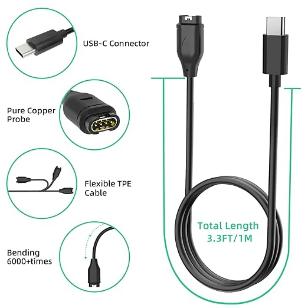 For Garmin Fenix 5 5S 5X Plus 6 6S 6X Pro 7 7S 7X Charger USB-C Charger ...