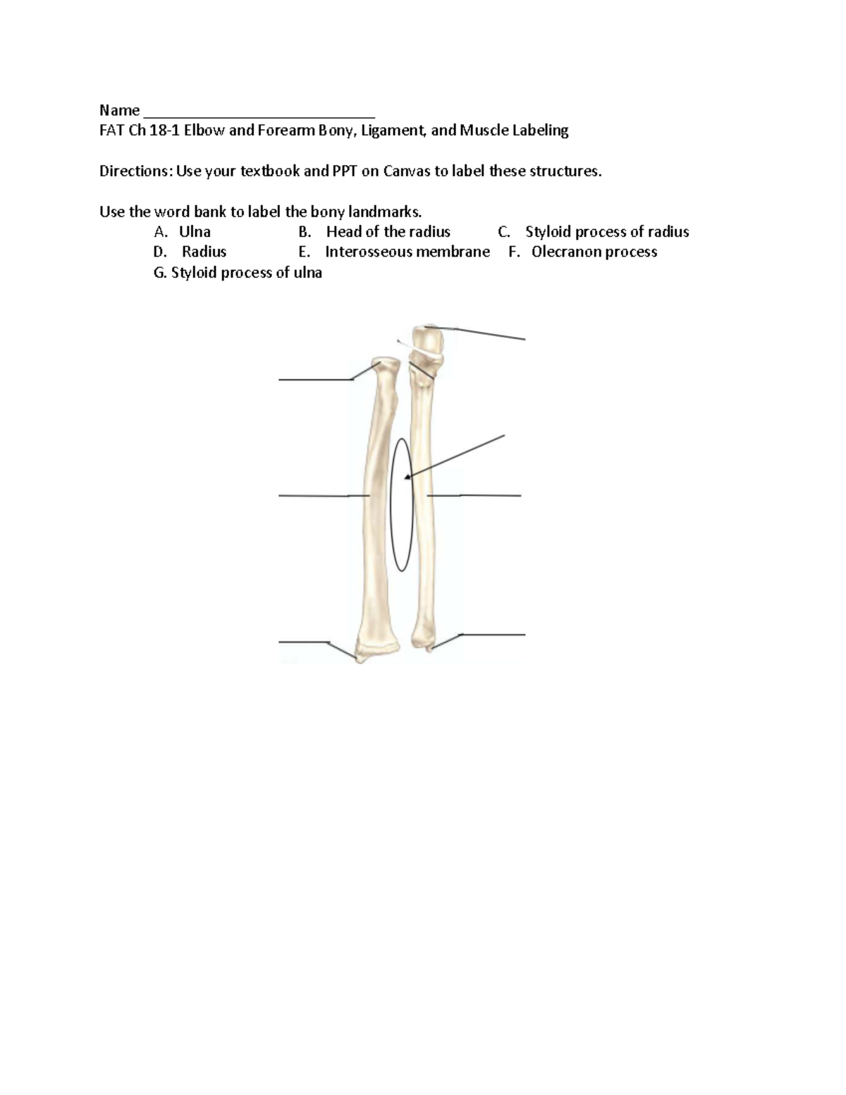 FAT Ch 18-1 Elbow & Forearm Bony and Ligament Labeling Guide - Studocu