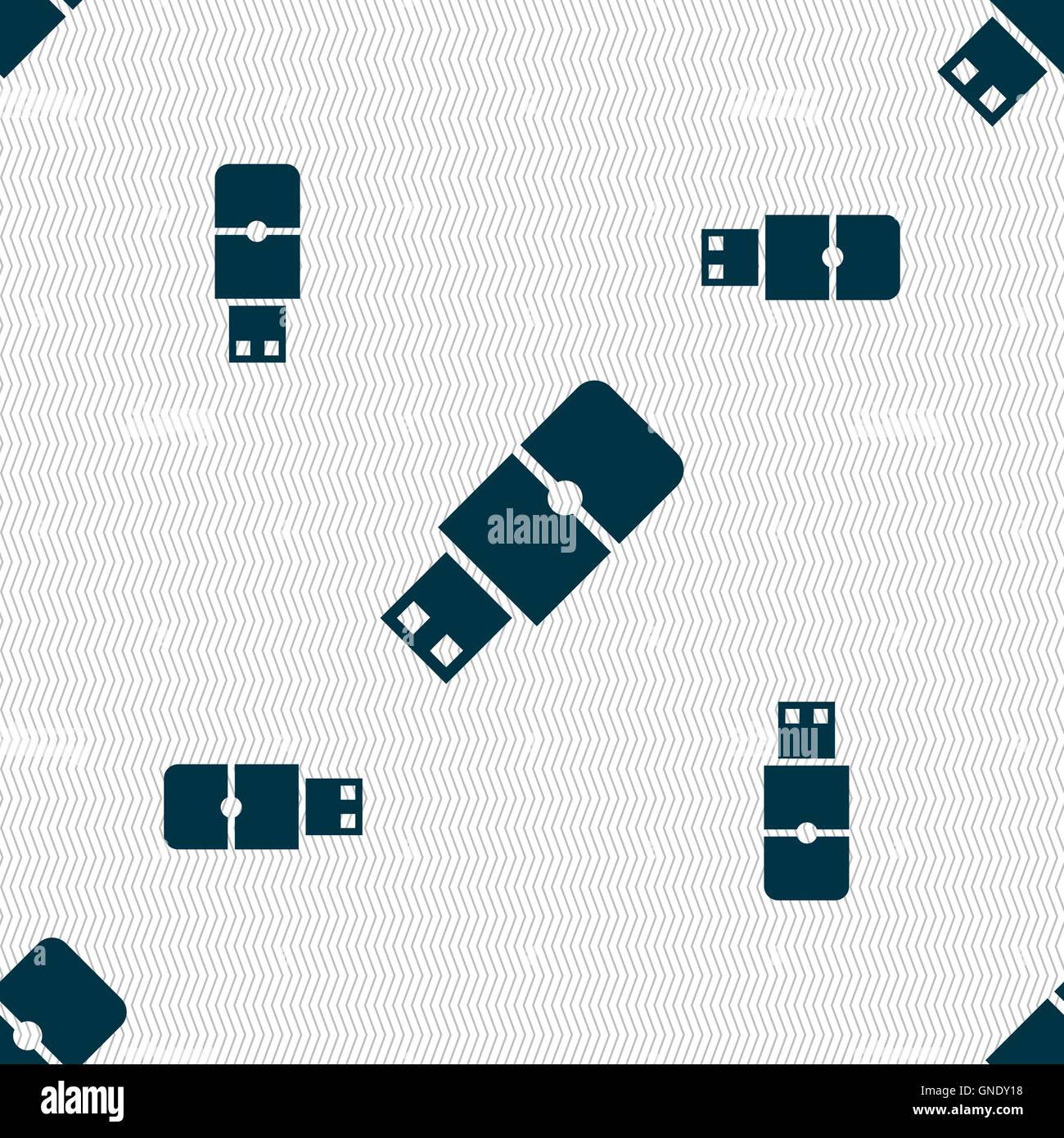 Usb flash drive icon sign. Seamless pattern with geometric texture ...