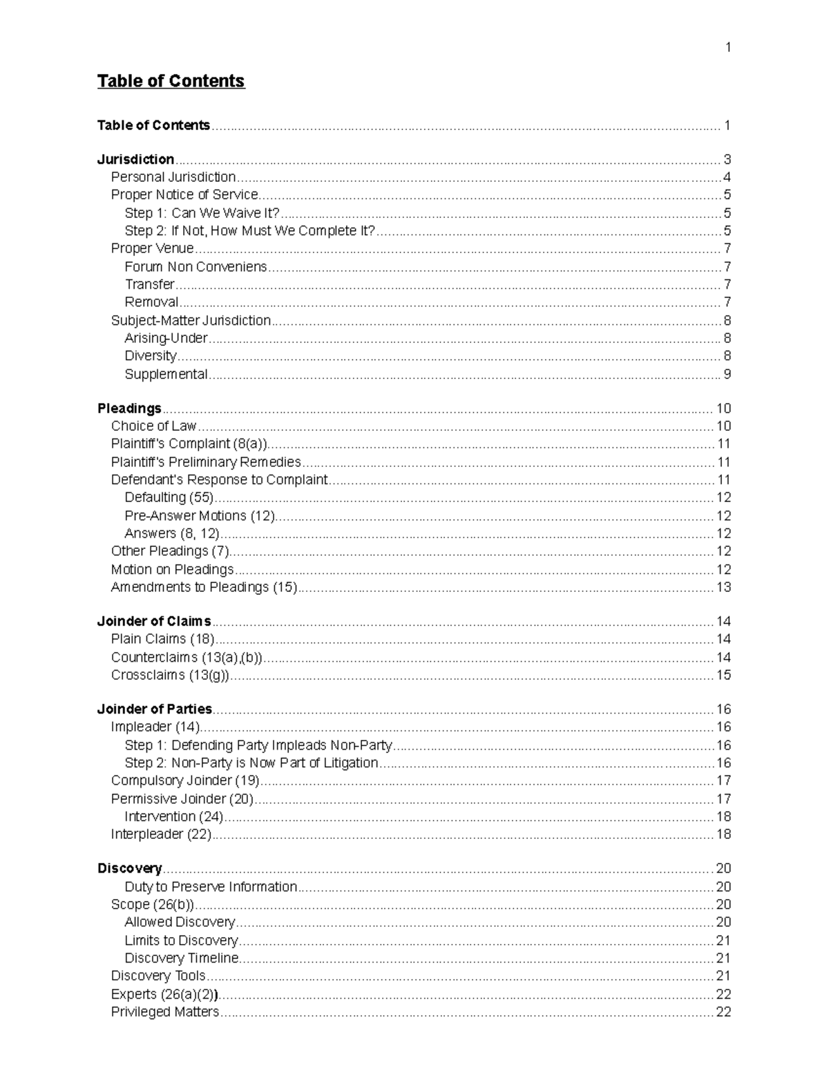Civ Pro - outlined class notes - Table of Contents Table of - Studocu