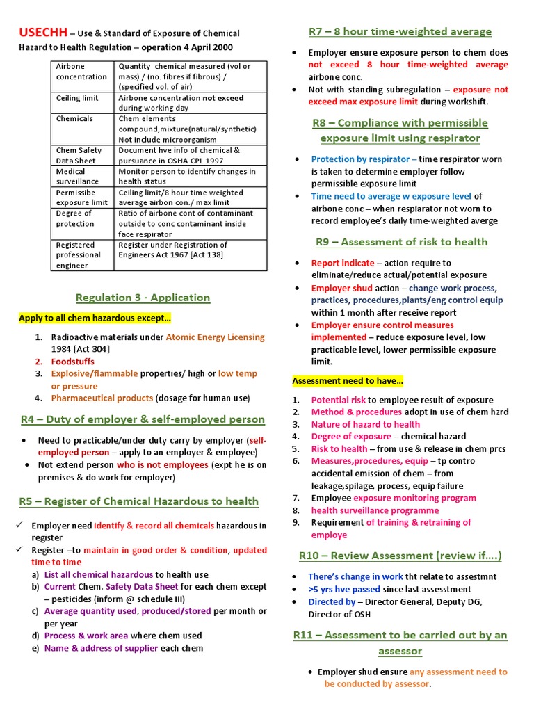 USECHH 2000 Regulations Overview | PDF | Dangerous Goods | Occupational ...