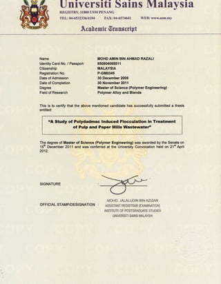 How many days to get a Universiti Sains Malaysia transcript online ...