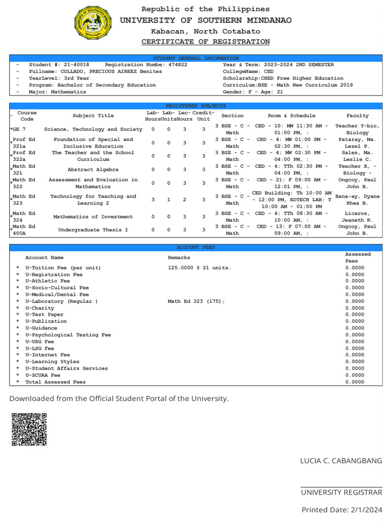 Httpsstudentportal Usm Edu phschedulesPrintCOR | PDF | Bachelor Of ...