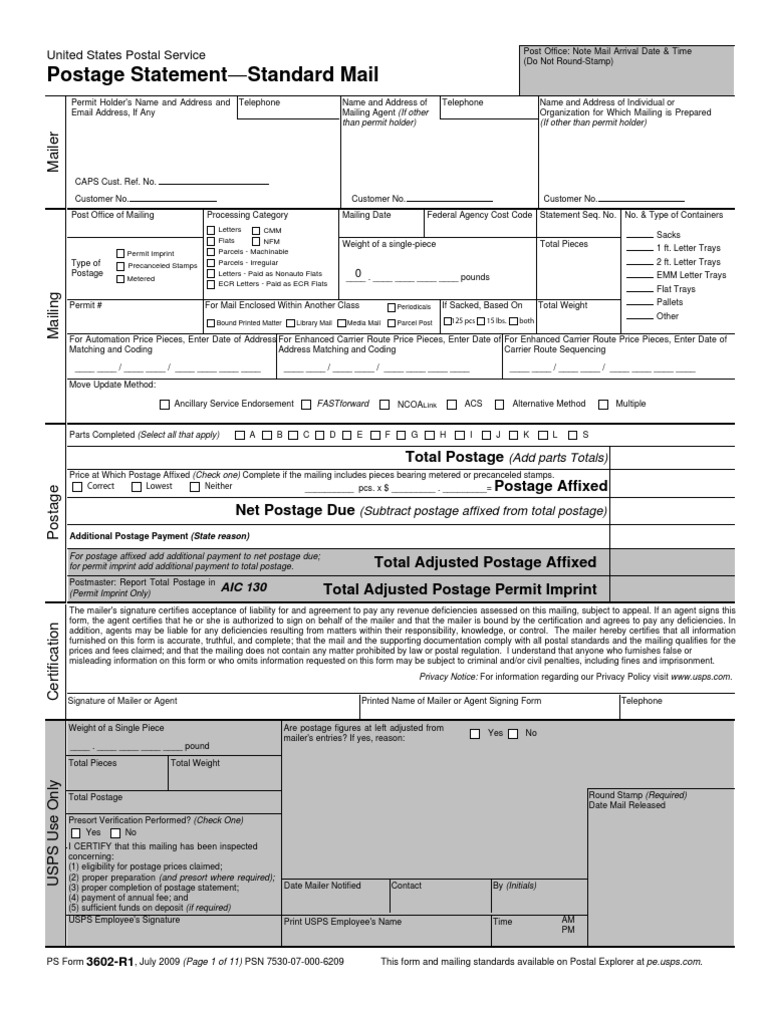 Usps postage statement standard mail fillable 2011 form: Fill out ...