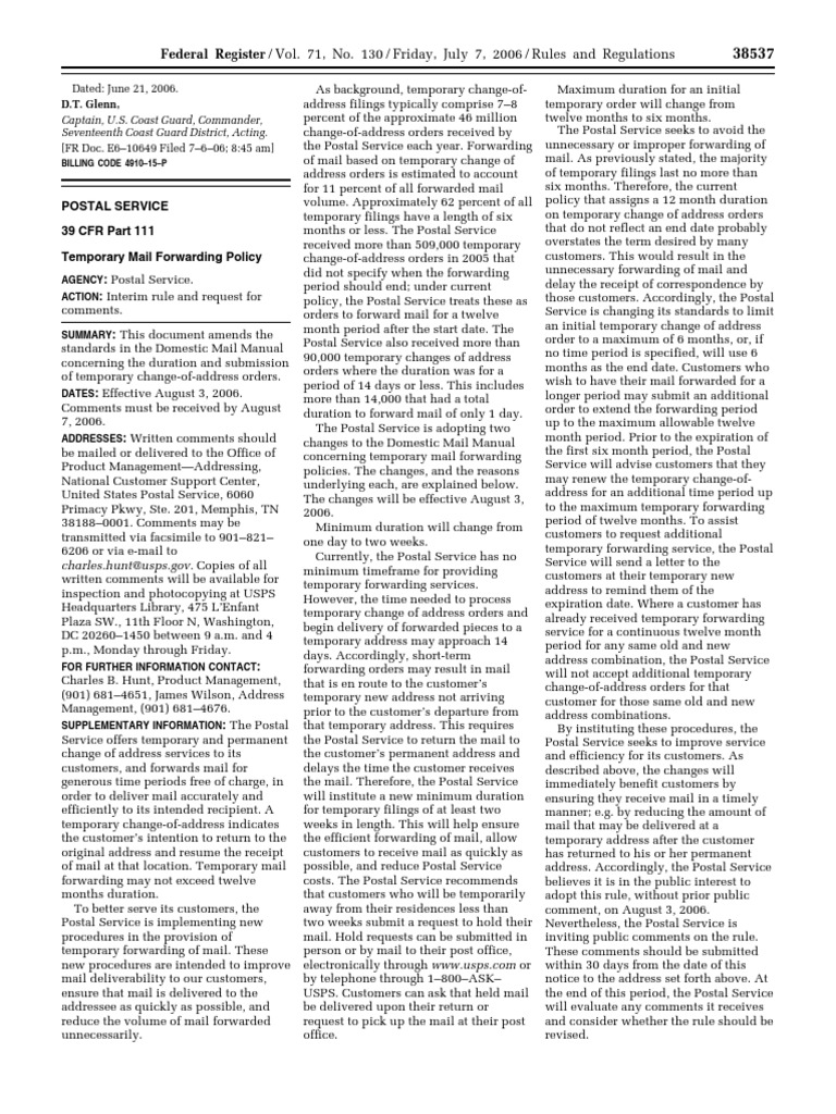 USPS Temporary Mail Forwarding Update | PDF | United States Postal ...