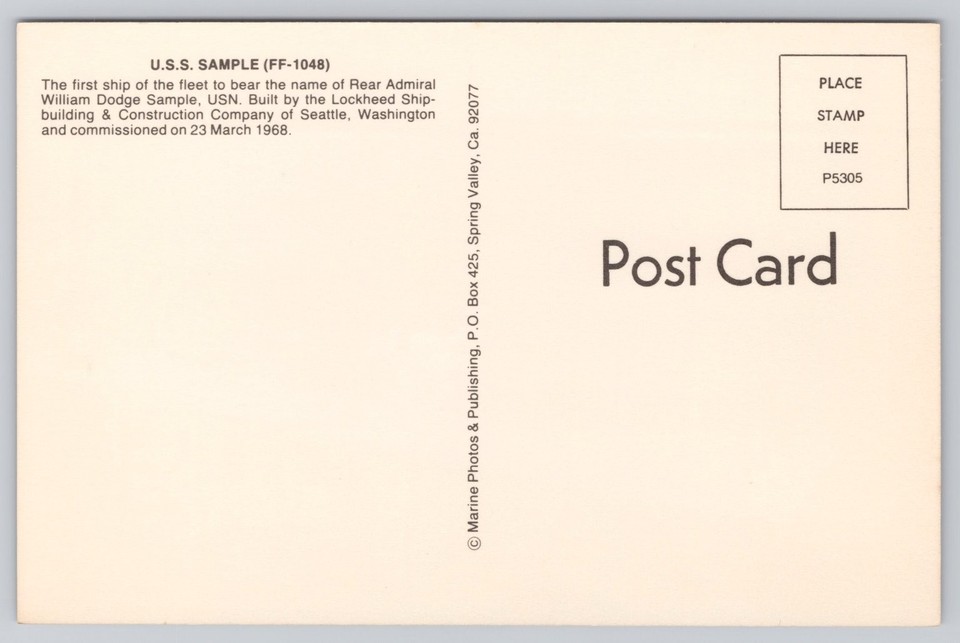 USS Sample FF-1048 Navy Frigate Ship Postcard Lockheed Seattle 1968 | eBay