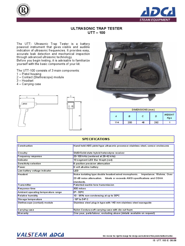 Introduction and Specifications of the UTT-100 Ultrasonic Trap Tester ...