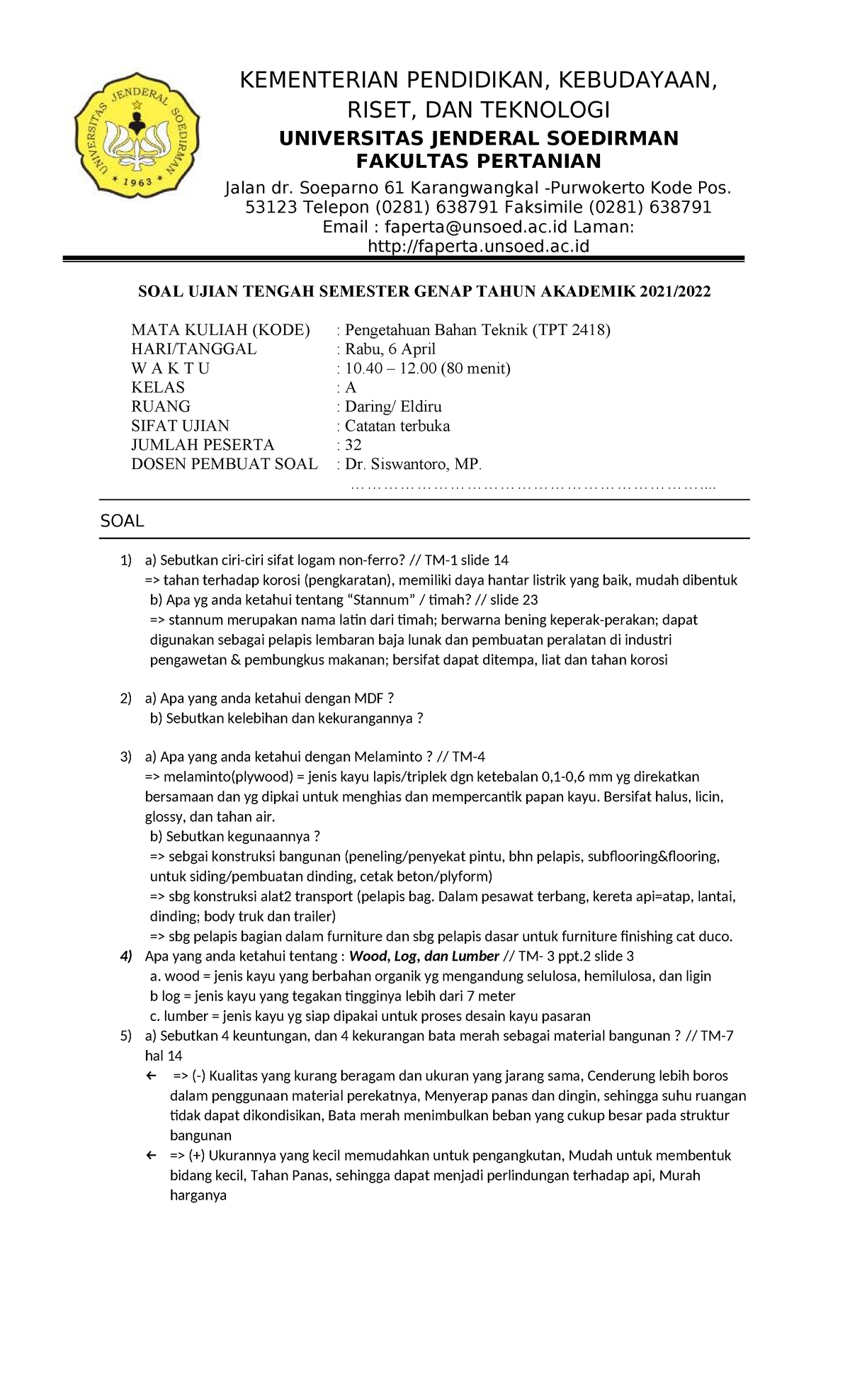 Jawaban Soal UTS PBT (TPT 2418) Genap 2021-2022 - Studocu
