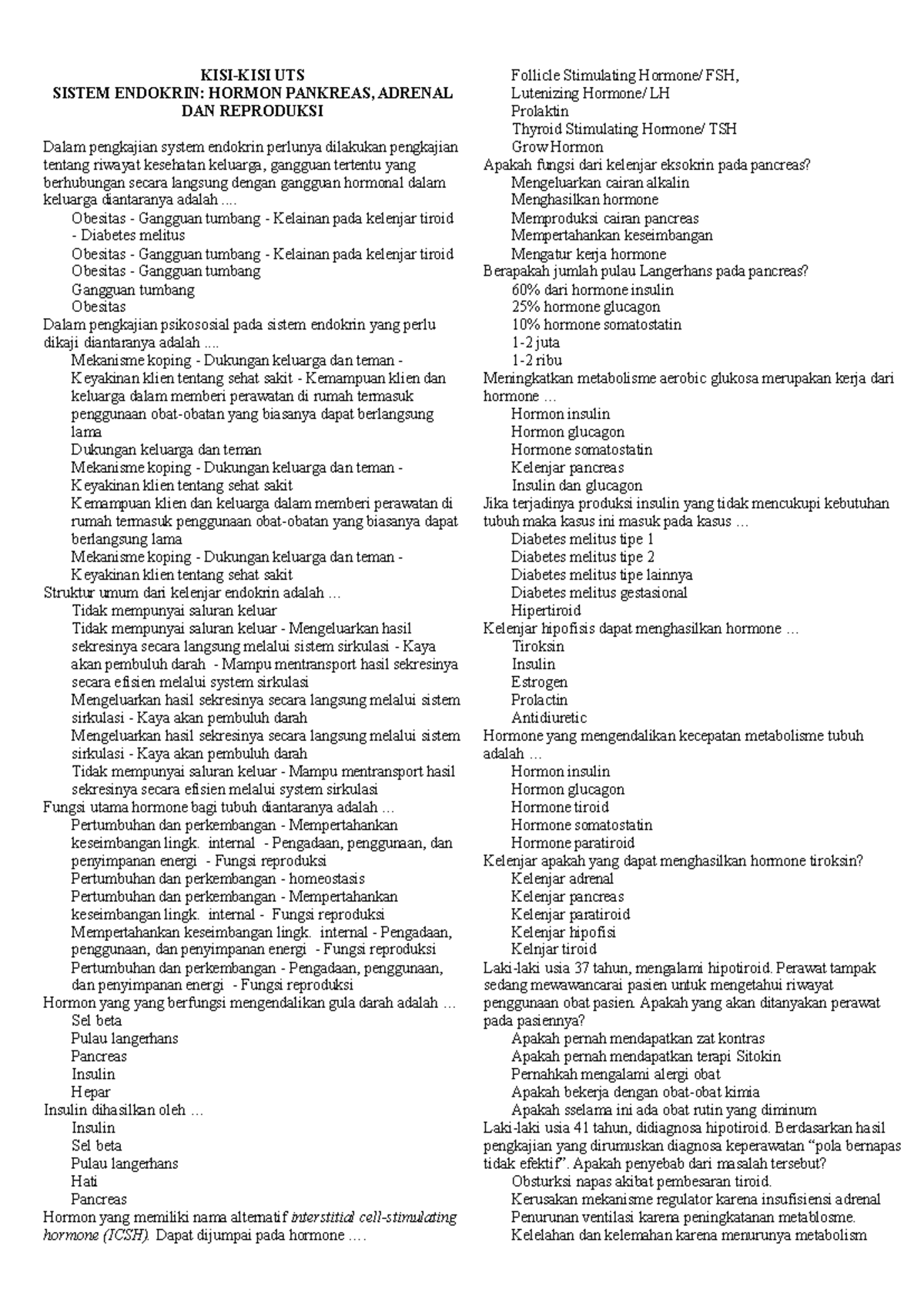 KISI-KISI UTS SISTEM ENDOKRIN: HORMON PANKREAS, ADRENAL & REPRODUKSI ...