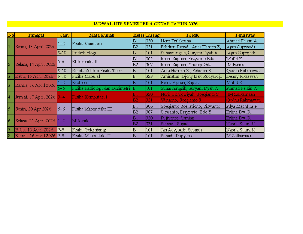 Jadwal UTS Semester 4 Genap 2026 - Fisika - Studocu