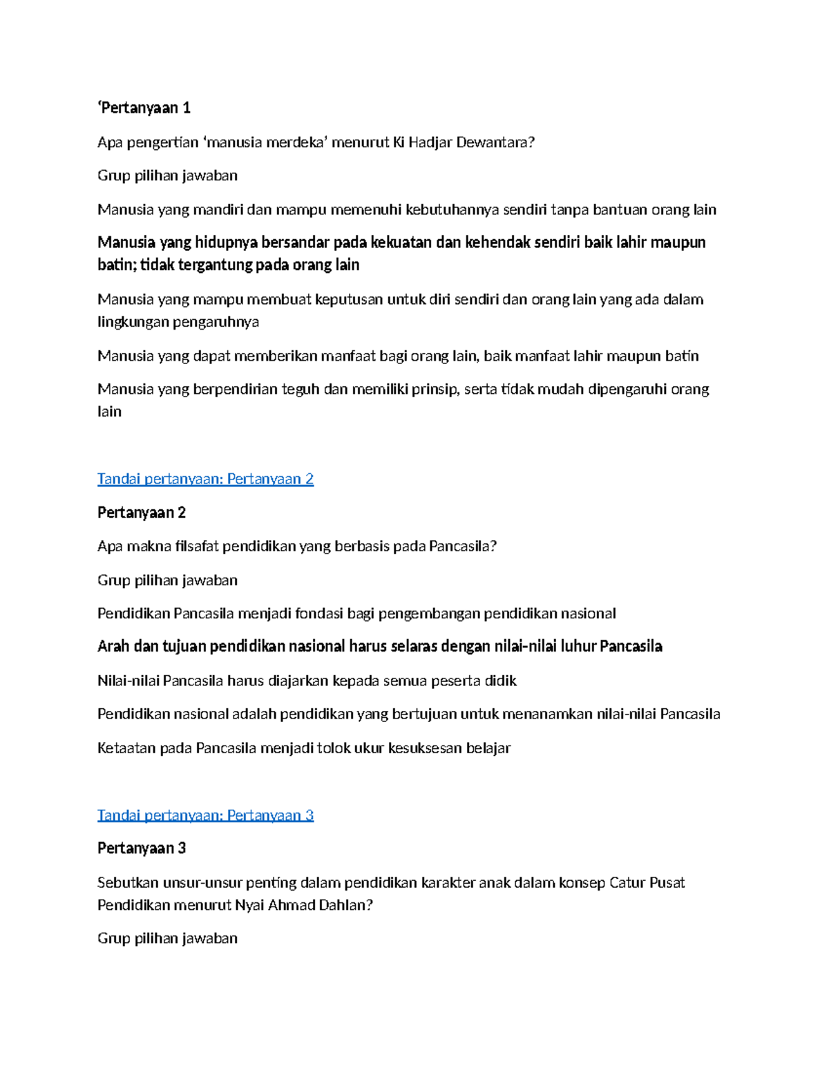 UTS - Pemikiran Ki Hadjar Dewantara dalam Pendidikan dan Karakter - Studocu