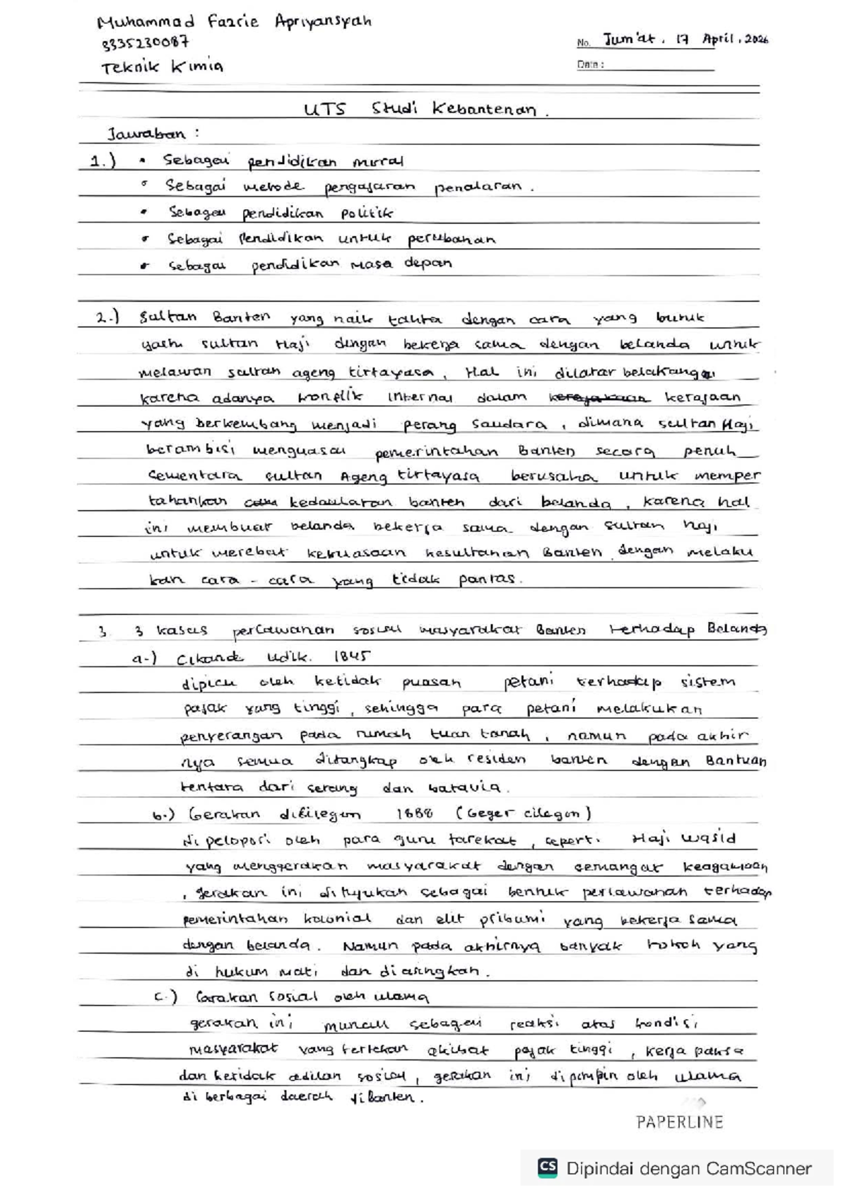 UTS Teknik Kimia: Analisis dan Pembahasan Kasus 3335230087 - Studocu