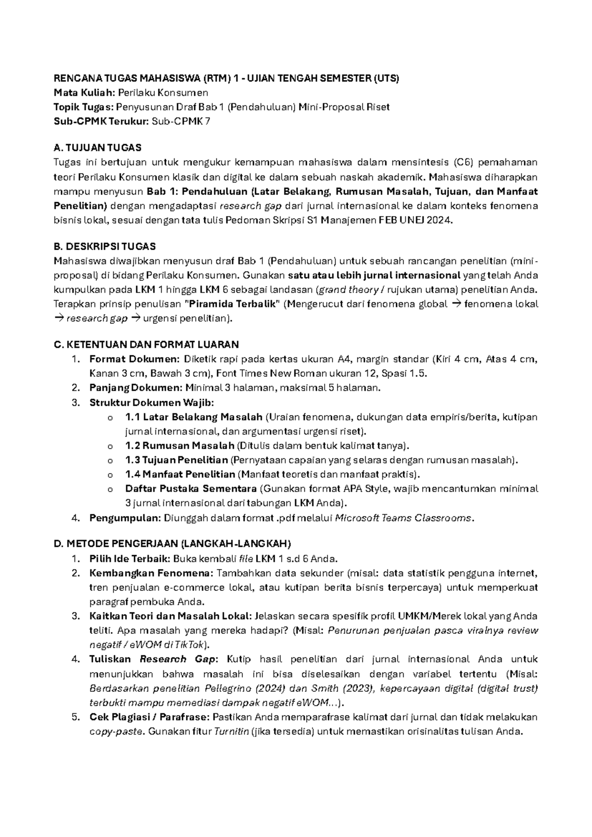 RTM 1 UTS: Penyusunan Draf Bab 1 Riset Perilaku Konsumen - Studocu