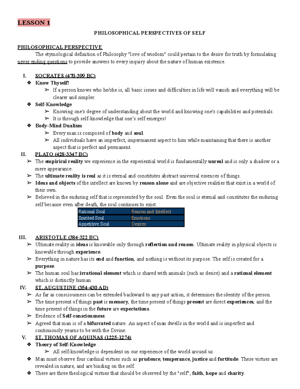 UTS-L1-L4 - Exploring Philosophical Perspectives of Self - Studocu