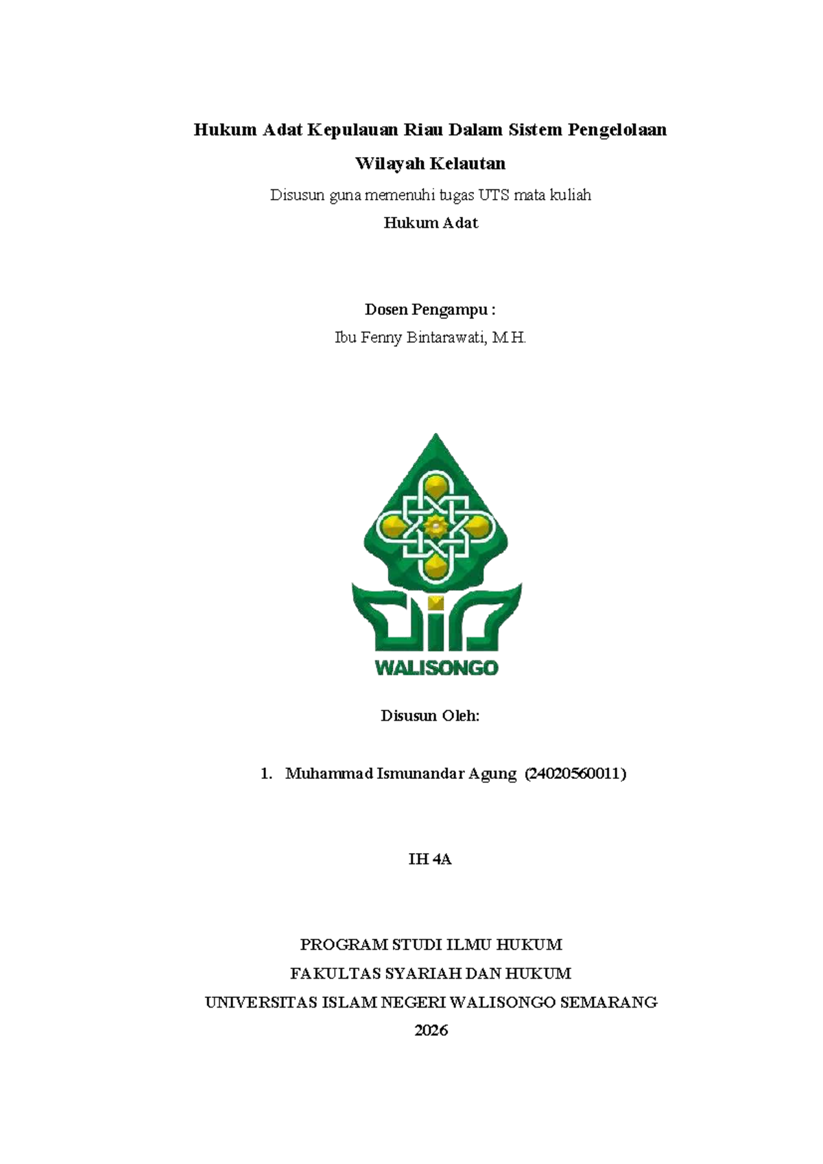 Hukum Adat Kepulauan Riau dalam Pengelolaan Wilayah Laut: Tugas UTS ...