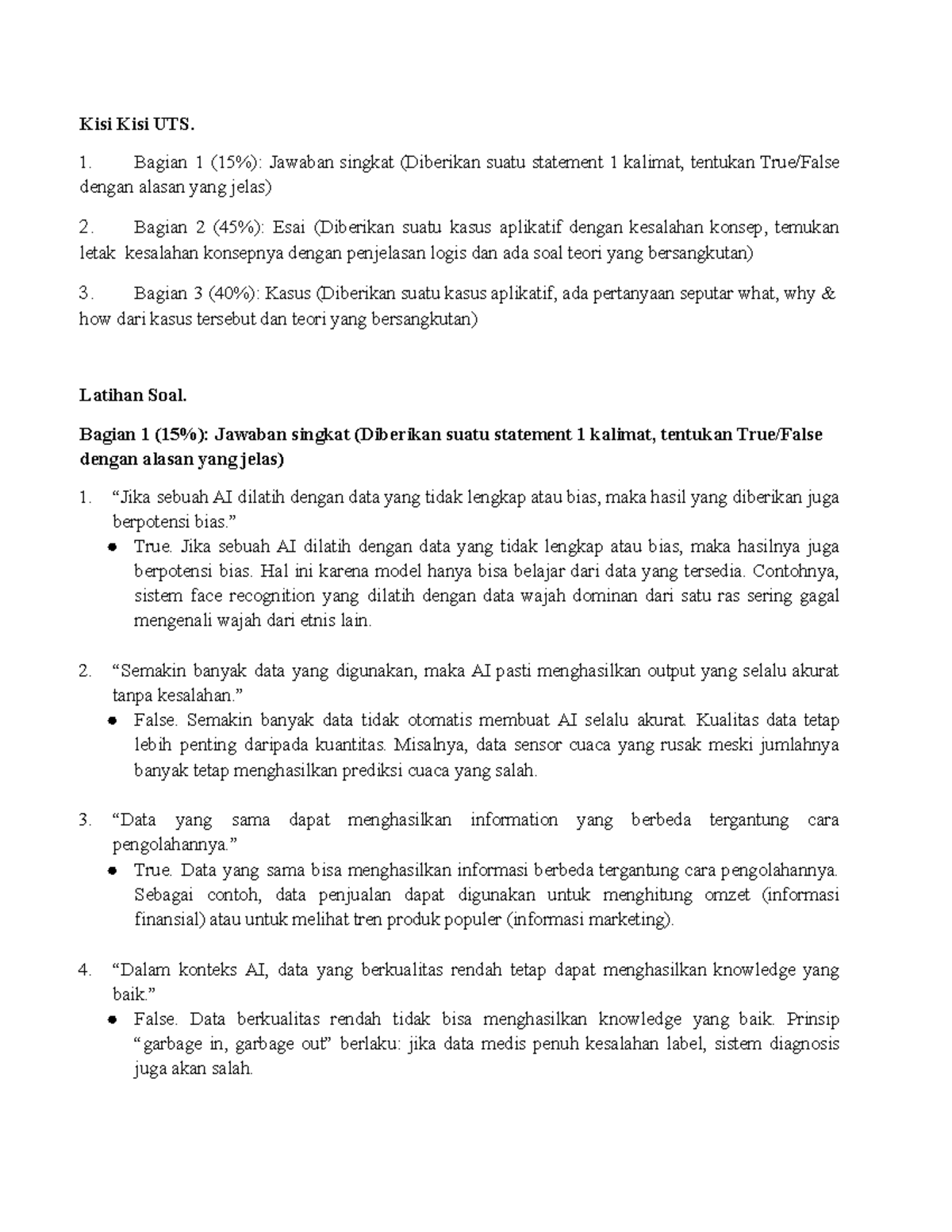 Latihan Soal UTS: Dasar-Dasar Kecerdasan Buatan (AI) - Studocu