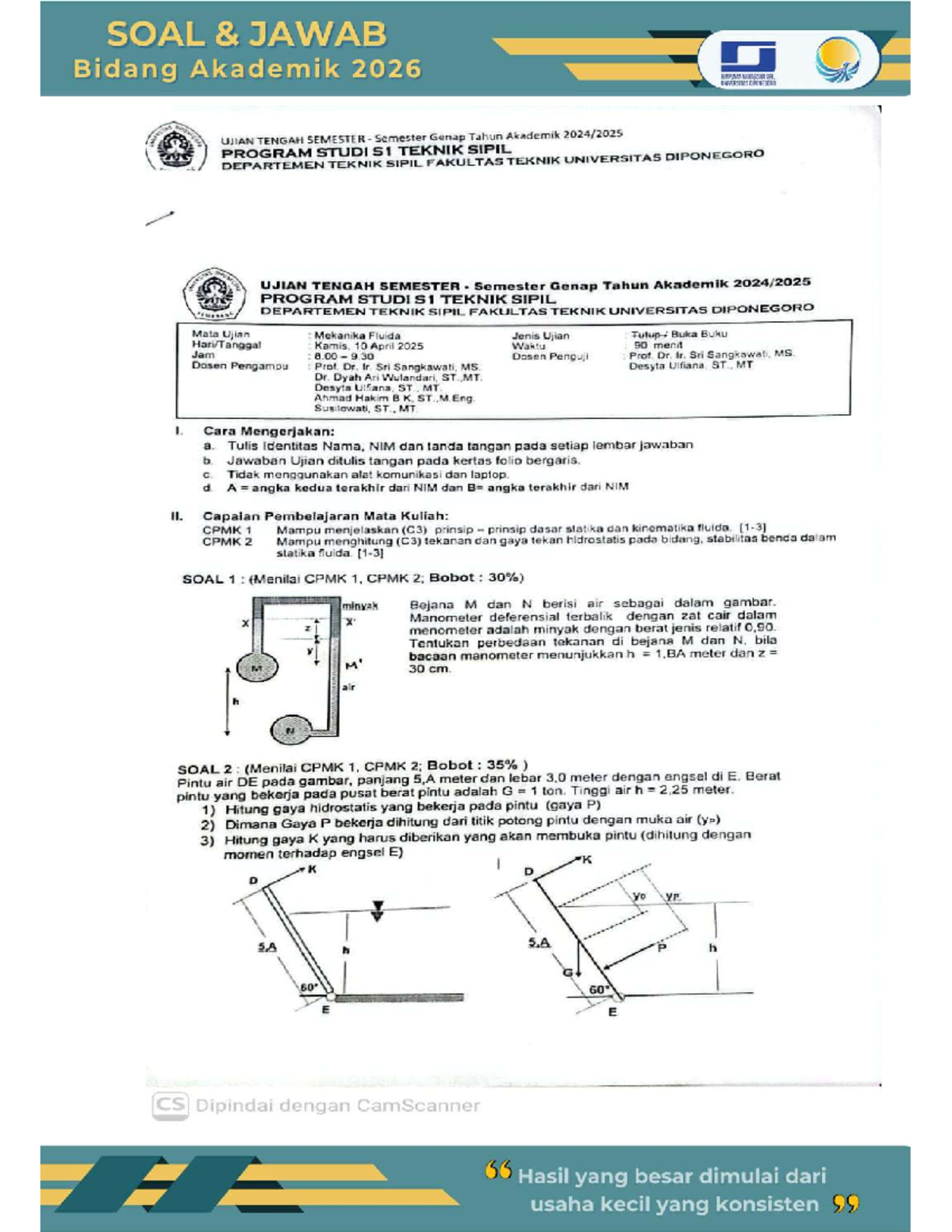 SNJ UTS Mekanika Fluida: Analisis Gaya Hidrostatis Pintu - Studocu