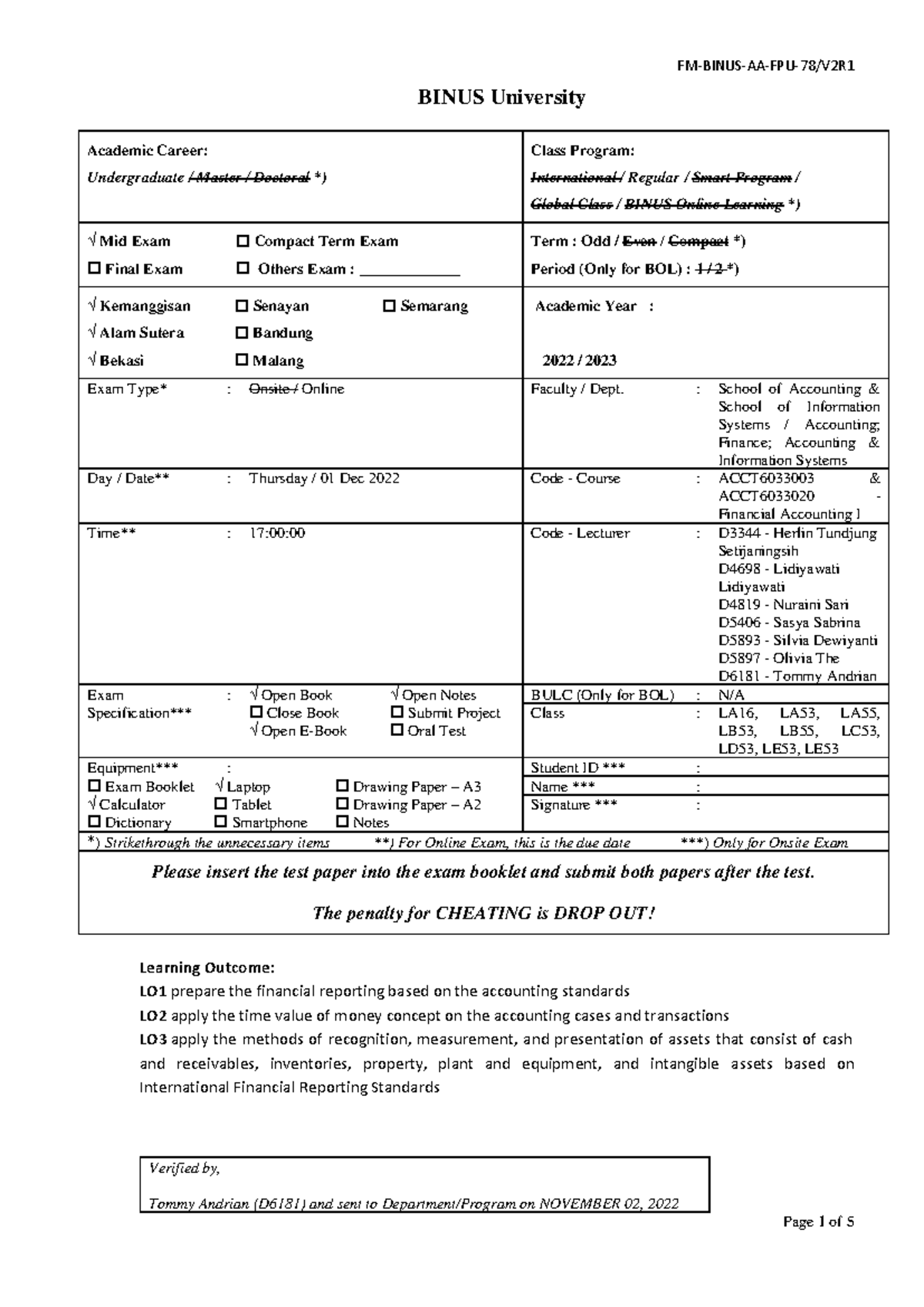SOAL UTS ACCT6033003 Financial Accounting I: Midterm Exam Guide - Studocu