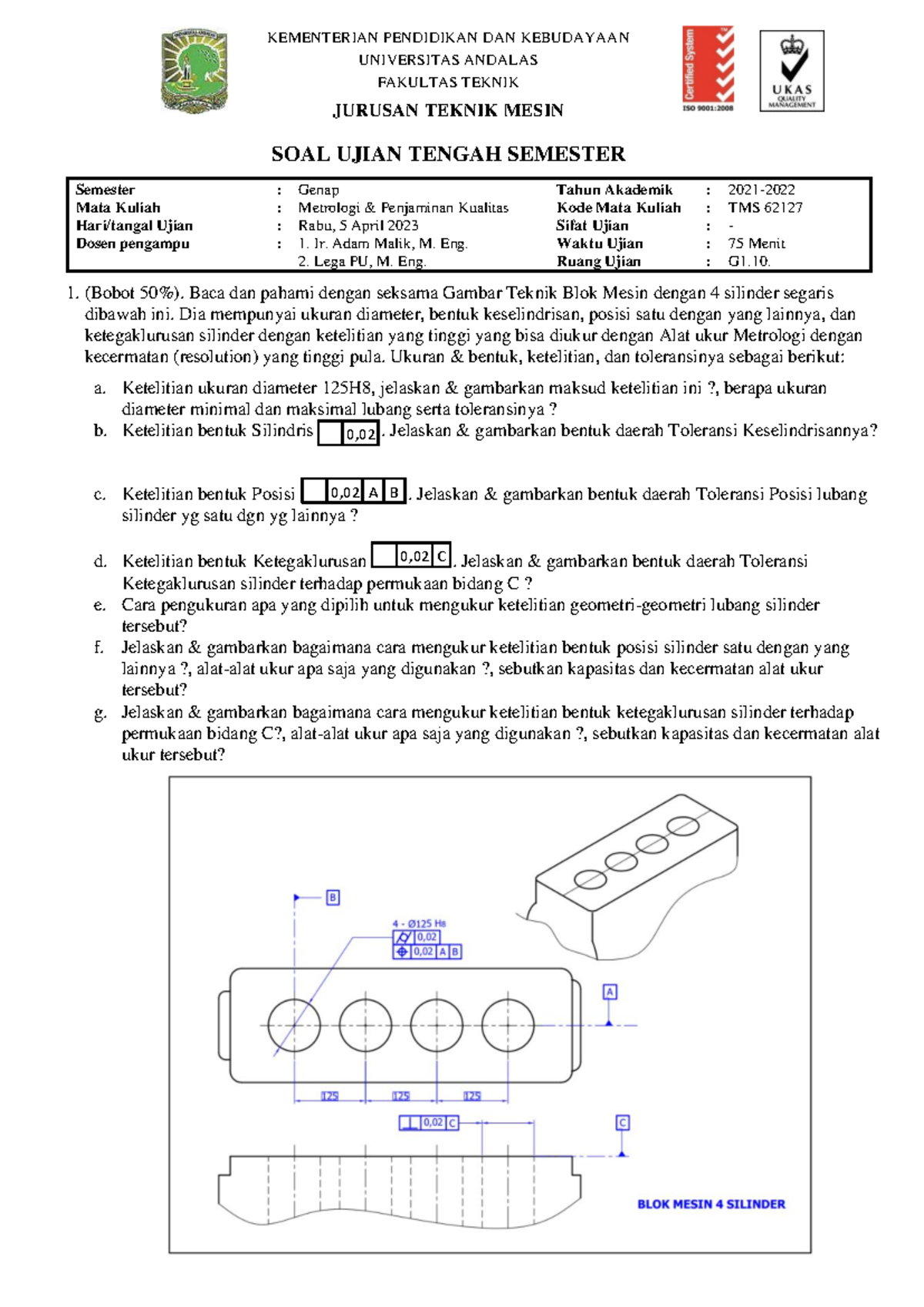 UTS TMS 62127: Metrologi dan Penjaminan Kualitas 2023 - Studocu