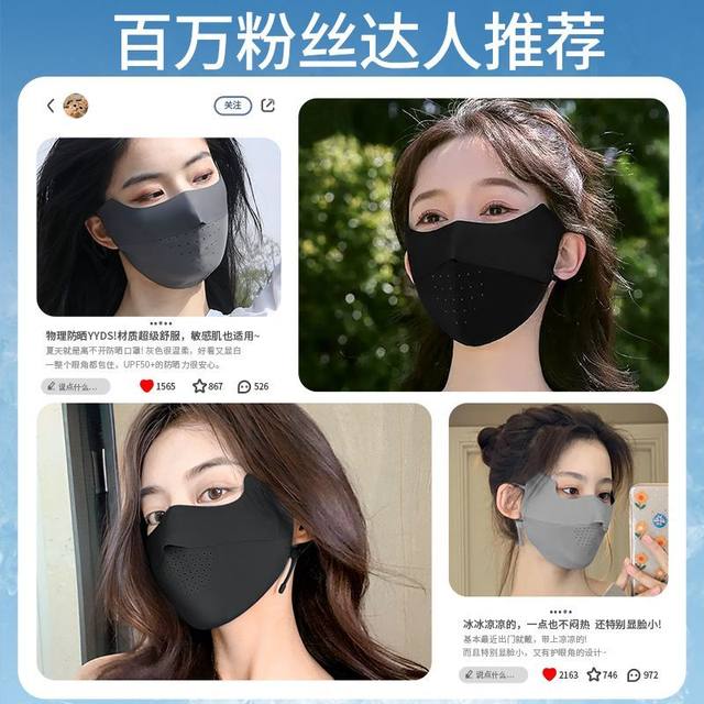 Sunscreen mask for women with ultraviolet rays, high-value ice silk ...