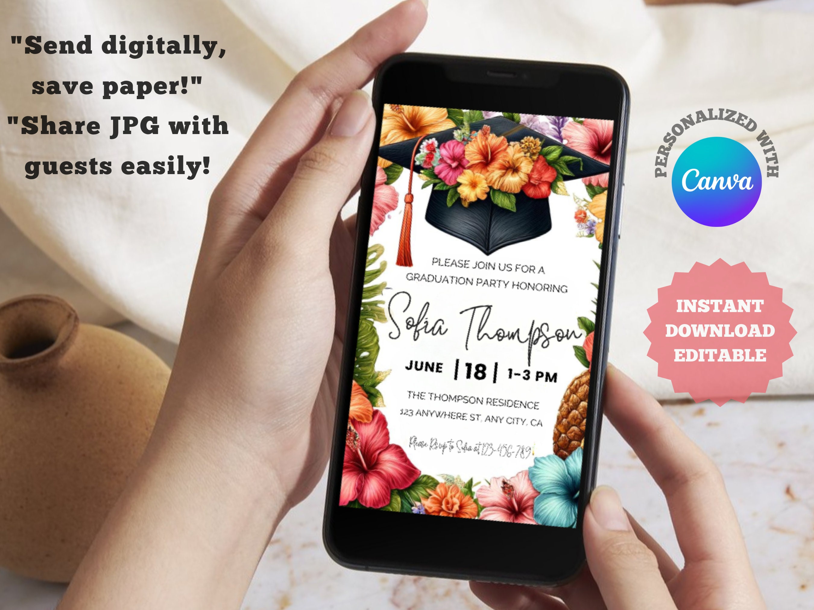 Hawaiian Graduation Invitation | Digital Download | Hibiscus Invitation ...