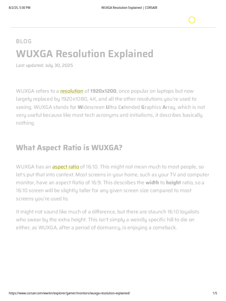 WUXGA Resolution Explained - CORSAIR | PDF | Electronics | Computer ...