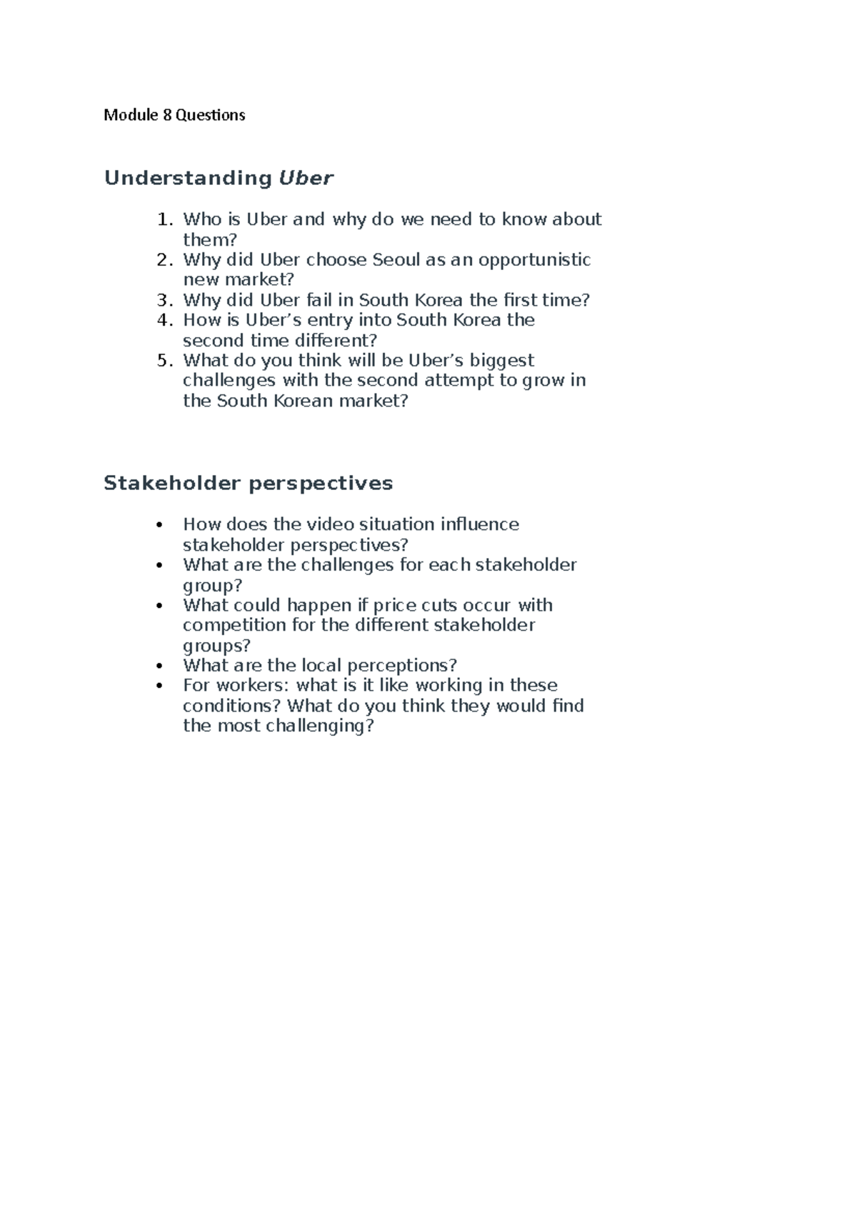Module 8 Questions for tutorial - Module 8 Questions Understanding Uber ...