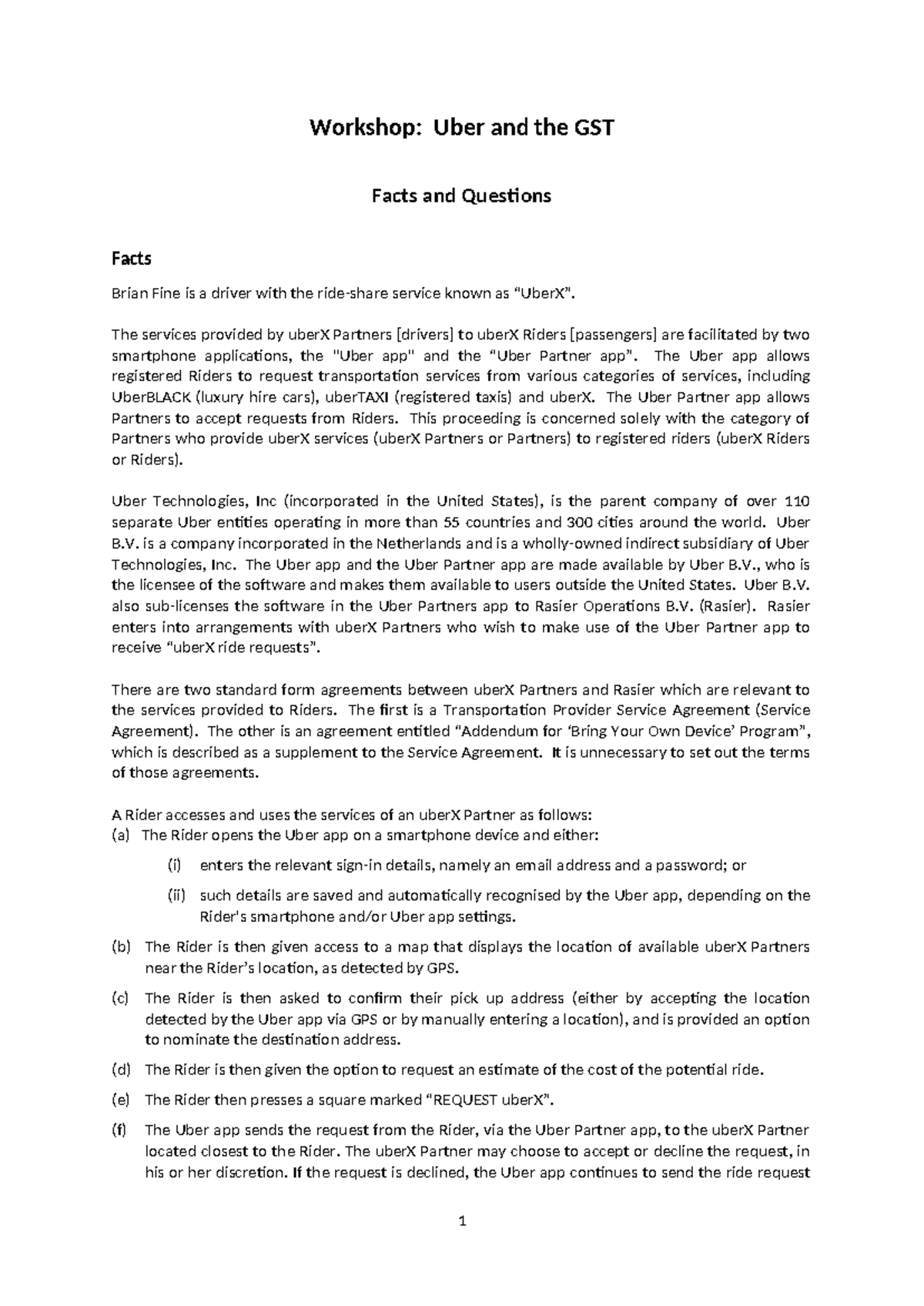 Uber and GST workshop - facts and questions - Workshop: Uber and the ...