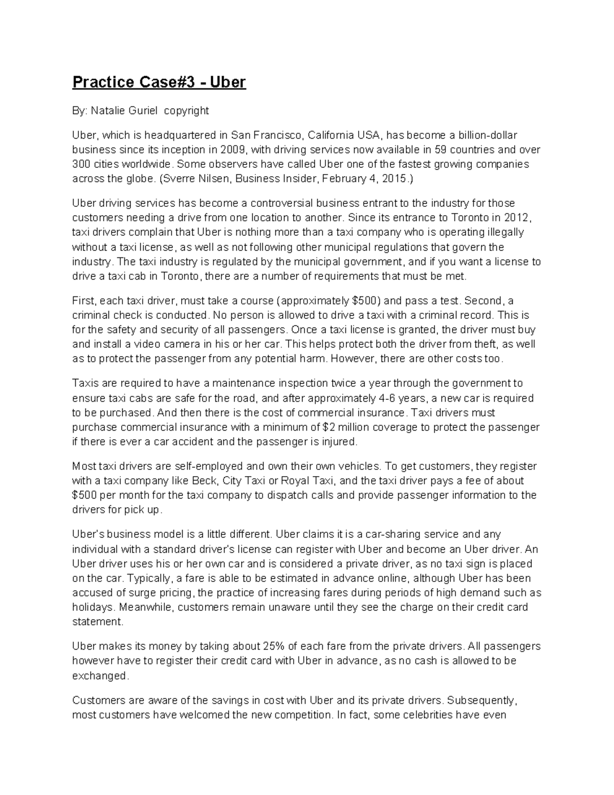 Midterm Review - Practice Case#3 - Uber - Questions - Practice Case#3 ...