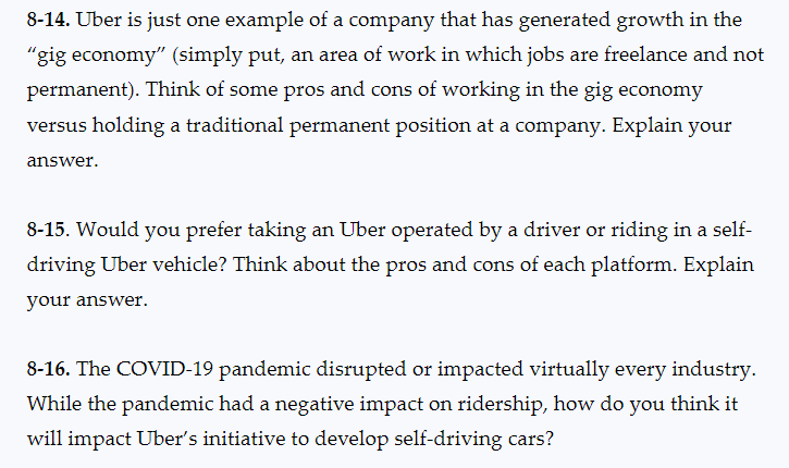 Solved Case Study 8 Uber Answer the following questions to | Chegg.com